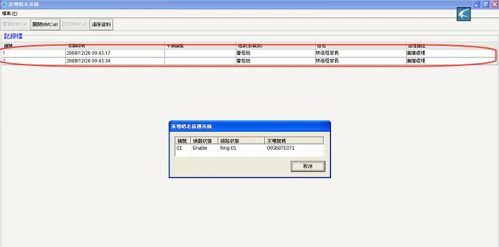 (十)當有來電時,來電唱名系統,便開始擷取判讀電話號碼,分析電話所有人,若系統內未記錄電話號碼,則會顯示 不明來電