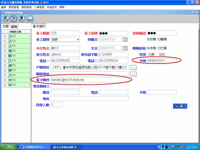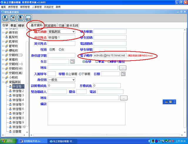 (四)教務管理學生基本資料:新增小朋友資料 (基本資料 班級 , 中文姓名 , 電子郵件)